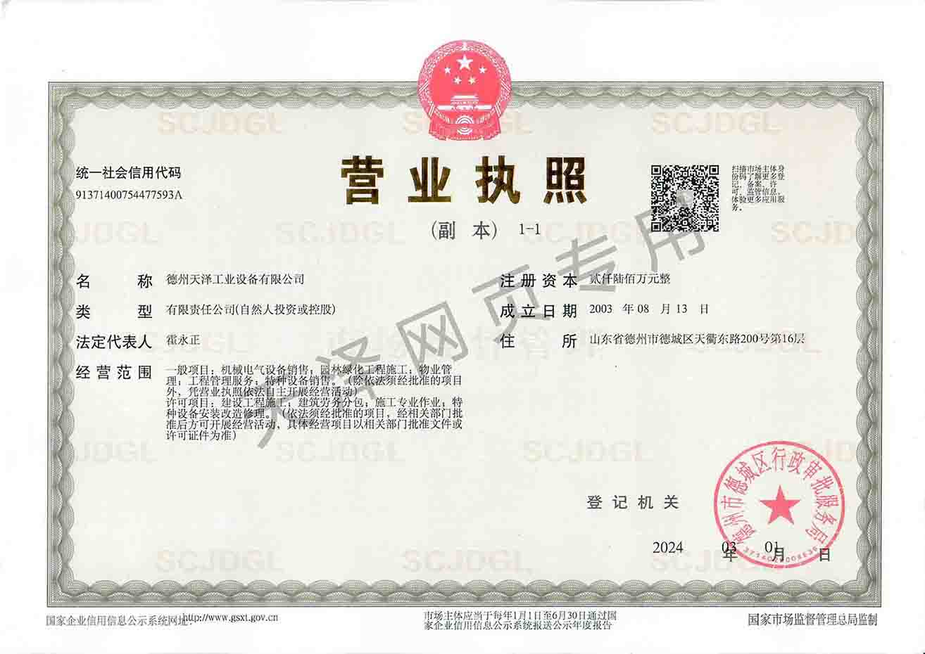 德州天澤工業(yè)設(shè)備有限公司成立于2003年(前身為德州天元集團(tuán)天明工業(yè)設(shè)備安裝公司),經(jīng)過20多年的發(fā)展,現(xiàn)成長為擁有職工600余人,各類專業(yè)技術(shù)人員近300余人,年生產(chǎn)能力兩億元以上,以建筑機(jī)電安裝工程、消防設(shè)施安裝工程施工為主,集建筑工程施工、市政工程施工、建筑智能化工程施工、園林綠化工程施工、工程管理服務(wù)、物業(yè)管理、電氣機(jī)械設(shè)備銷售等多元化經(jīng)營于一體的綜合型企業(yè)。2005年,企業(yè)按照國際標(biāo)準(zhǔn)建立的質(zhì)量管理體系,通過了ISO質(zhì)量管理體系認(rèn)證、環(huán)境管理體系認(rèn)證、職業(yè)健康安全管理體系認(rèn)證。施工工程遍布山東、河北、四川、江蘇等地,最具代表性的工程有:山東省德州市百腦匯資訊廣場機(jī)電安裝工程、德州經(jīng)濟(jì)開發(fā)區(qū)天元大廈機(jī)電安裝工程、陵城區(qū)人民醫(yī)院機(jī)電安裝工程、德州金魯班大廈機(jī)電安裝工程、河北故城金辰小區(qū)機(jī)電安裝工程、北川地震災(zāi)后援建工程等。多年來,公司始終堅(jiān)持“以人為本,建精品工程,創(chuàng)行業(yè)品牌”的經(jīng)營理念,先后榮獲省(市)級泰山杯、天府杯、魯安杯等獎(jiǎng)項(xiàng),申報(bào)各種功法、多項(xiàng)專利。
